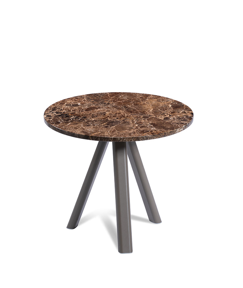 The Norman 3-Pod table collection combines minimalist geometry with refined craftsmanship. Its three-legged aluminum frame, available in a range of vibrant colors, offers both stability and modern appeal. The polished marble tops, each uniquely veined, bring a timeless elegance that elevates any sophisticated setting. Treated to reduce porosity, these glossy surfaces require regular care to maintain their pristine beauty, making the Norman 3-Pod an exquisite choice for discerning environments.