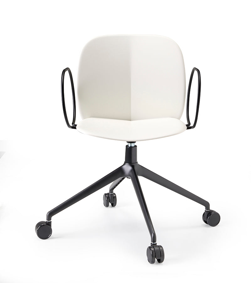Mentha is a visual reference to the world of nature and its harmonious and attractive lines, in which the ecological theme finds its synthesis in an easily recognizable shape: the leaf.The upholstered version is perfect for indoor use, while the minimalist technopolymer version is also suitable for outdoor environments.